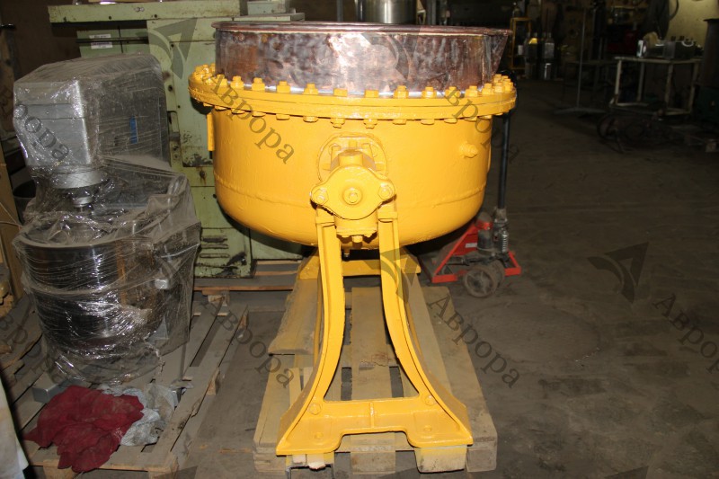В нижней части паровой рубашки установлен кран для спуска воздуха и конденсата, на подводящей паровой линии — манометр и предохранительный клапан. Вертикальный вал мешалки снабжен лопастями.