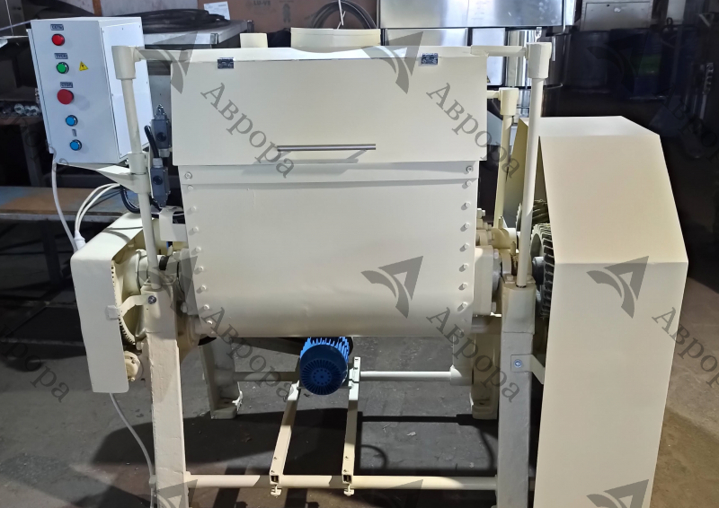 - Машина состоит из станины, месильной емкости с двумя Z-образными лопастями, рубашки, стационарной крышки, узла механического опрокидывания месильной емкости, привода лопастей, привода опрокидывания и возврата месильной емкости, ограждении и пульта управления.