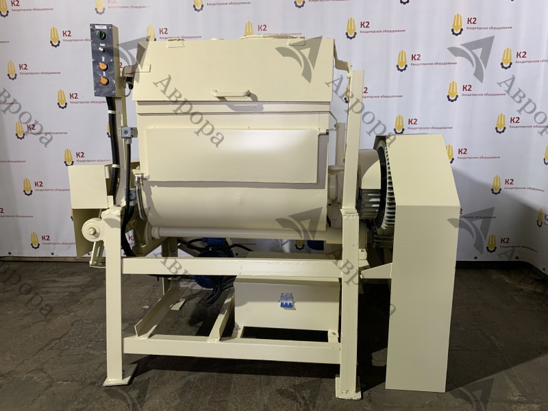 - Машина состоит из станины, месильной емкости с двумя Z-образными лопастями, рубашки, стационарной крышки, узла механического опрокидывания месильной емкости, привода лопастей, привода опрокидывания и возврата месильной емкости, ограждении и пульта управления.