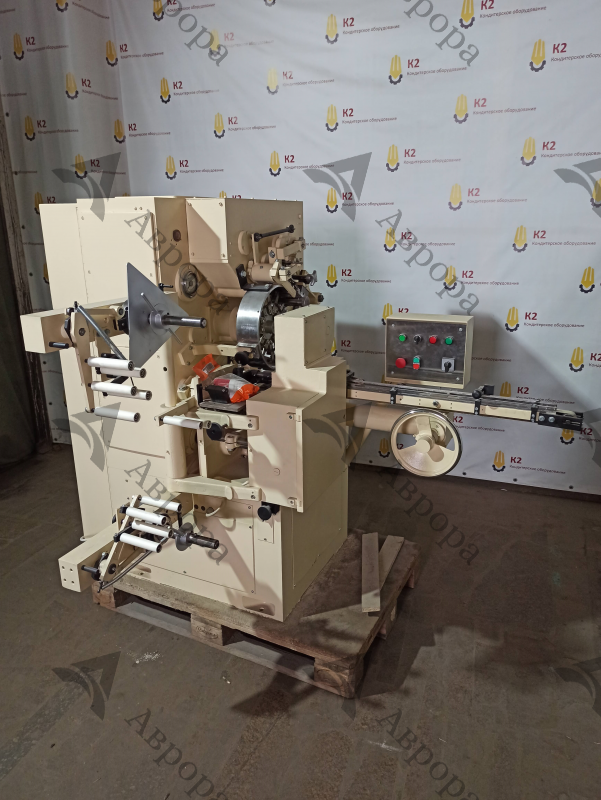 Машина предназначена для упаковки мягких конфет типа коровка, глазированная вафля в "носок" (острые кончики с двух сторон)